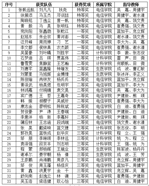 各相關學院高度重視學生實踐能力和創(chuàng)新精神的培養(yǎng),大力開展“第二課堂”工程實踐能力培養(yǎng),鼓勵和支持學生參與高水平學科競賽。以電信學院為例,該學院建有設施優(yōu)良的創(chuàng)新實驗室,組建了創(chuàng)新教師團隊,制定了完善的系統(tǒng)化創(chuàng)新培養(yǎng)體系,定期開展電子設計協(xié)會專業(yè)基礎培訓、大學生電子創(chuàng)新設計訓練、“求真杯”電子設計競賽等系列創(chuàng)新活動和課外培訓,鼓勵學生將所學用于實踐。