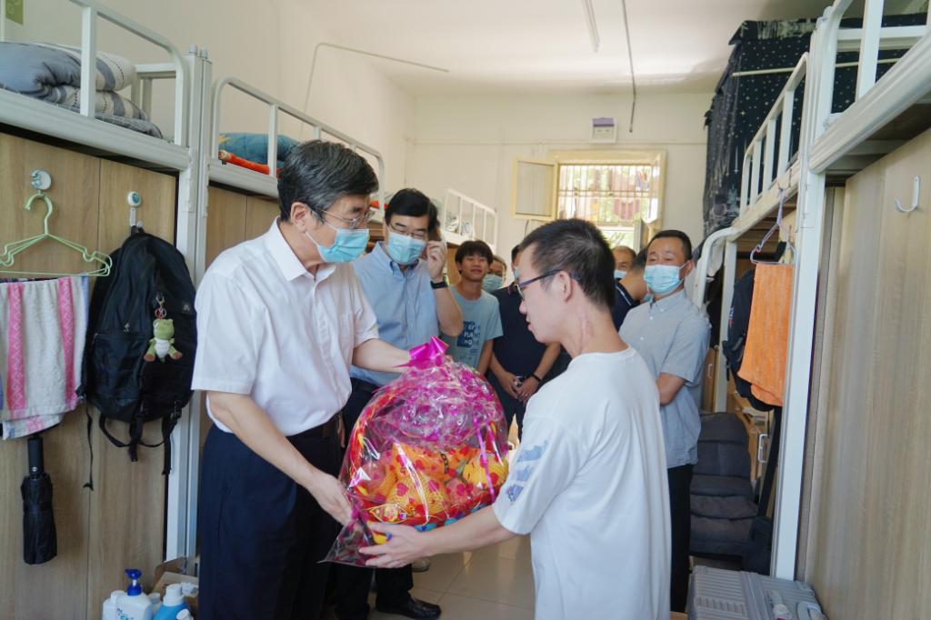 在學生寢室,校領導了解了同學們的住宿環境和生活情況,充分肯定了同學們對防疫工作的支持,希望同學們繼續遵守防疫規定,積極培育互幫互助的寢室文化,共同維護安全穩定的校園環境;詳細詢問了各年級同學的學習或就業情況,希望低年級同學打牢專業基礎、多去自習室、多進實驗室,鼓勵高年級同學樹立正確的就業觀,特別是有意向考研的同學合理選擇報考院校,積極備考,爭取早日“上岸”。他們還希望同學們多參加體育鍛煉,在強身健體中永葆青春朝氣。