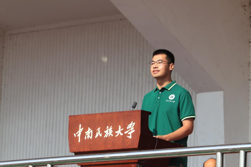 “帶著美好愿景,我來到武漢這座英雄城市,走進環抱雙塔綠水的民大校園。”來自文傳學院的新生代表賀吉潤在發言中表達自己對于大學生活的向往和期待,“大學四年,風華正茂,關關難過關關過,前路漫漫且燦燦。我愿與在座每一位民大人攜手奔跑向未來。”