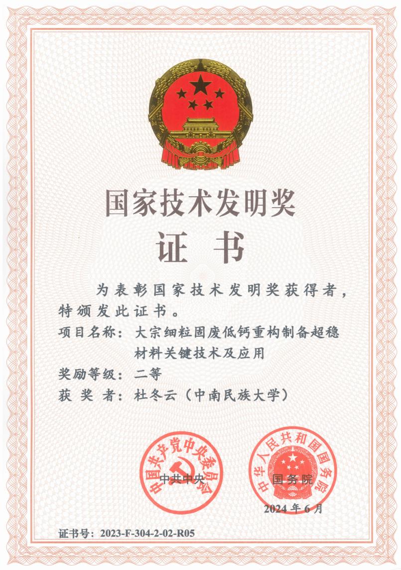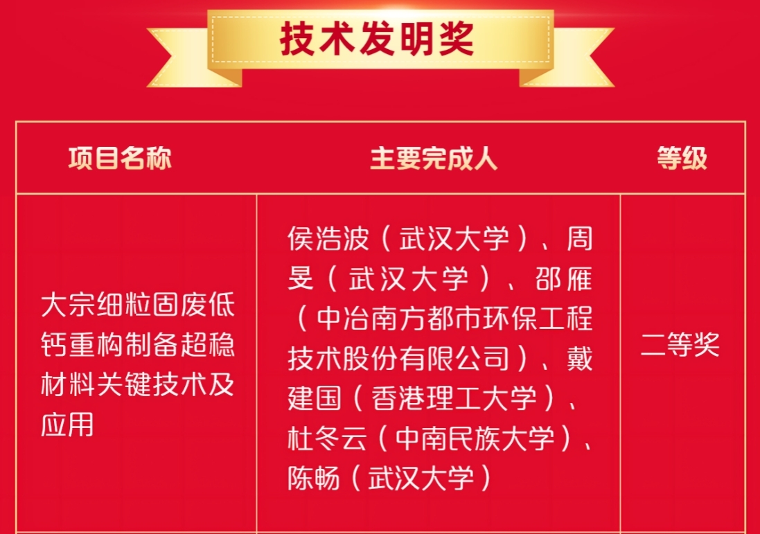此次獲獎(jiǎng)項(xiàng)目為“大宗細(xì)粒固廢低鈣重構(gòu)制備超穩(wěn)材料關(guān)鍵技術(shù)及應(yīng)用”,是由武漢大學(xué)與我校等4家單位共同完成。武漢大學(xué)資源與環(huán)境科學(xué)學(xué)院侯浩波教授為第一完成人,我校化學(xué)與材料科學(xué)學(xué)院杜冬云教授為第五完成人。
