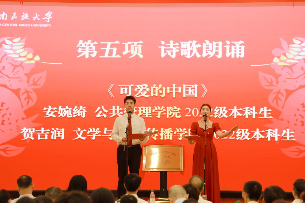 揭牌儀式結(jié)束后,與會(huì)人員共同欣賞了我校2022級(jí)本科生安婉綺、賀吉潤帶來的詩朗誦《可愛的中國》。