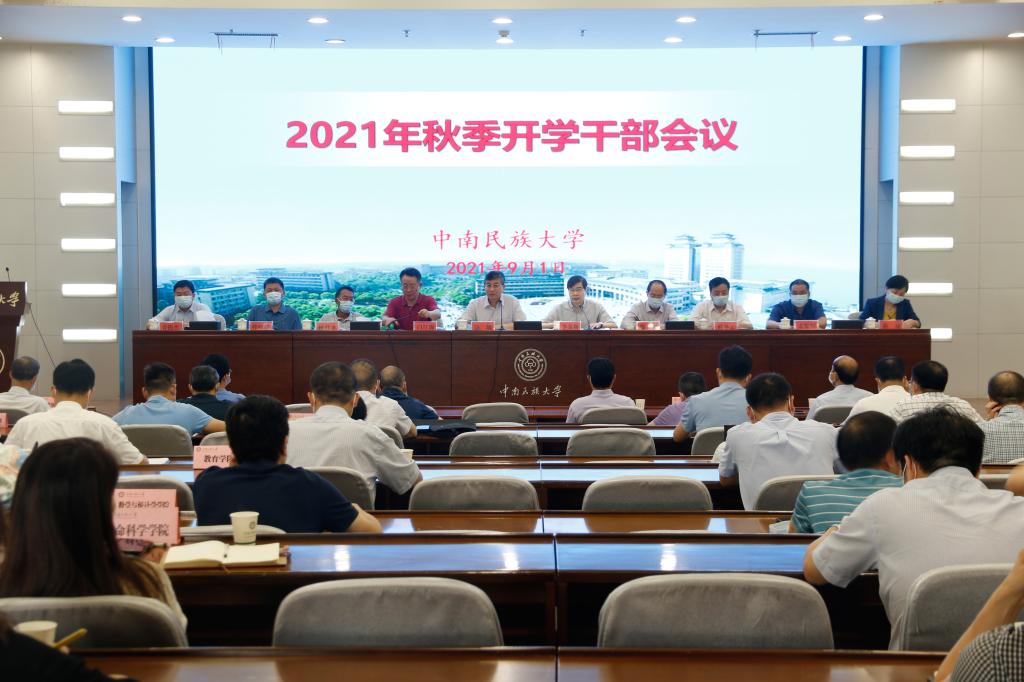9月1日上午,學校召開秋季開學干部會議,學習中央民族工作會議精神,部署下半年工作。學校黨委常委、學校老領導、各單位主要負責人、離退休人員和民主黨派代表在學術交流中心主會場,科級以上干部在各單位分會場參加了會議。會議由校黨委書記邊境主持。