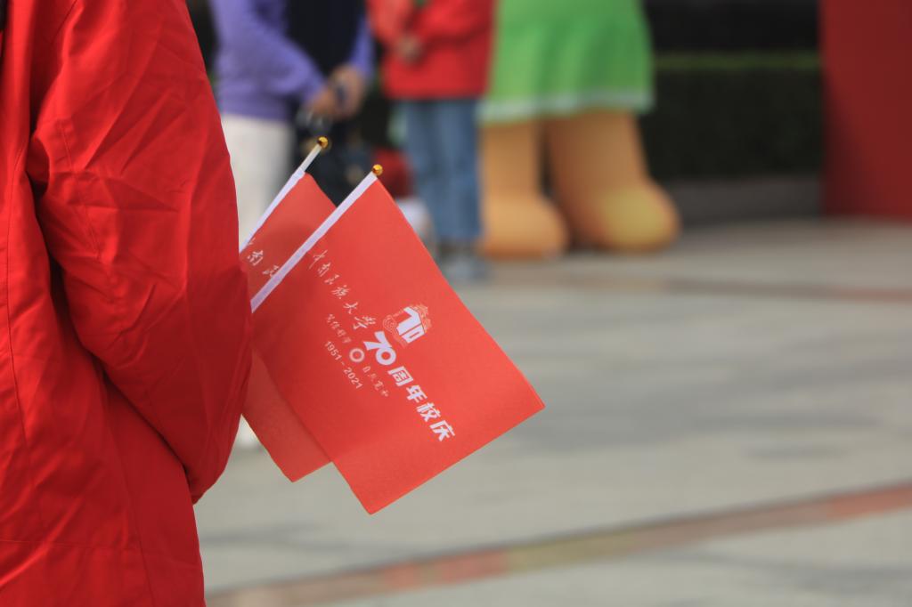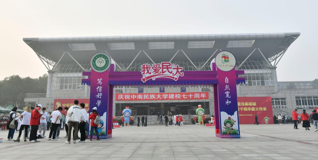 墨香飄盈繞雙塔,七秩芳華沐秋光。迎來70華誕的中南民族大學彩旗飄揚、鮮花綻放。會場內外,線上線下,四方賓朋齊聚,師生攜手共賀校慶。暖場音樂點燃全場激情,大會現場其樂融融,大家紛紛用手機記錄美好,用圖片復刻青春。“祝福母?!薄拔覑勰感!?,網上不斷傳來廣大校友的真切心聲。滾動播放的校慶宣傳片《不忘來時路再赴新征程》帶領大家致敬過往,共期未來。