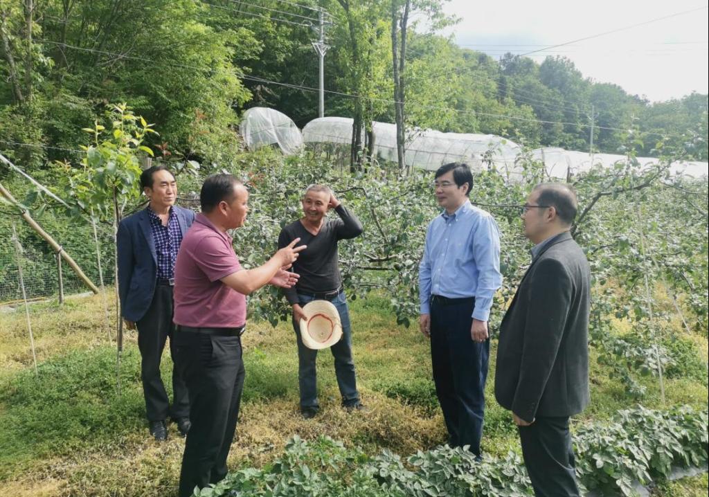 李金林(右二)一行在瓦屋場村黃金梨產業園調研。朱溢攝