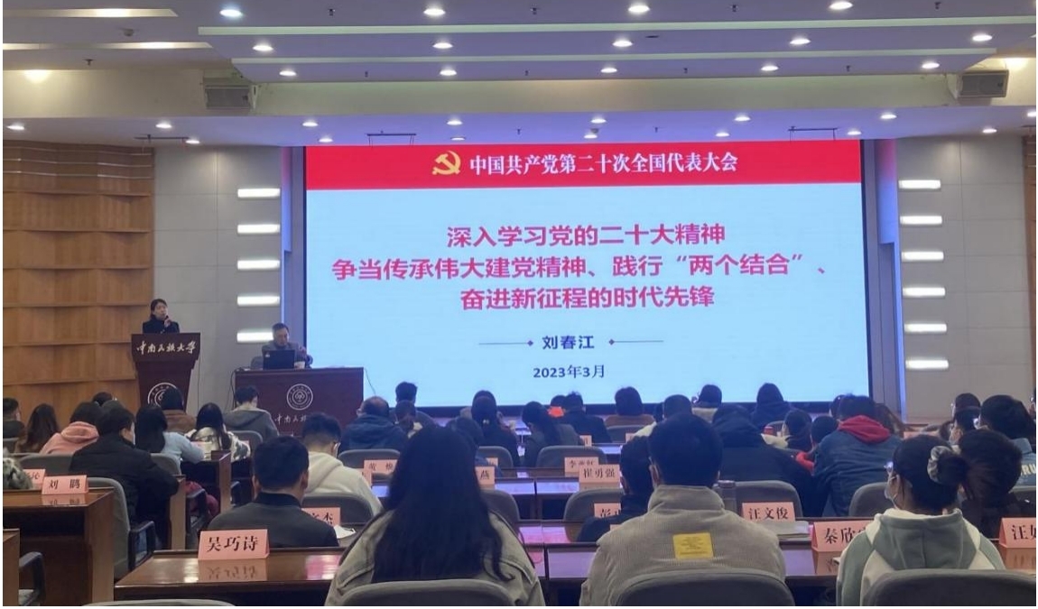 3月17日下午,湖北省委、武漢市委宣講團成員,武漢理工大學黨委常委、副校長劉春江研究員應邀來校,為140余名基層黨支部書記作《深入學習黨的二十大精神,爭當傳承偉大建黨精神、踐行“兩個結(jié)合”、奮進新征程的時代先鋒》輔導報告。報告會由黨委組織部副部長王瓊主持。