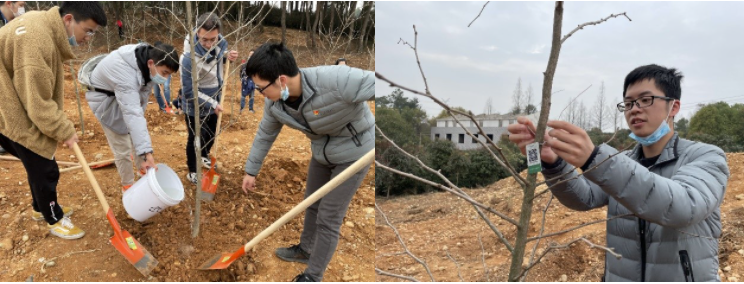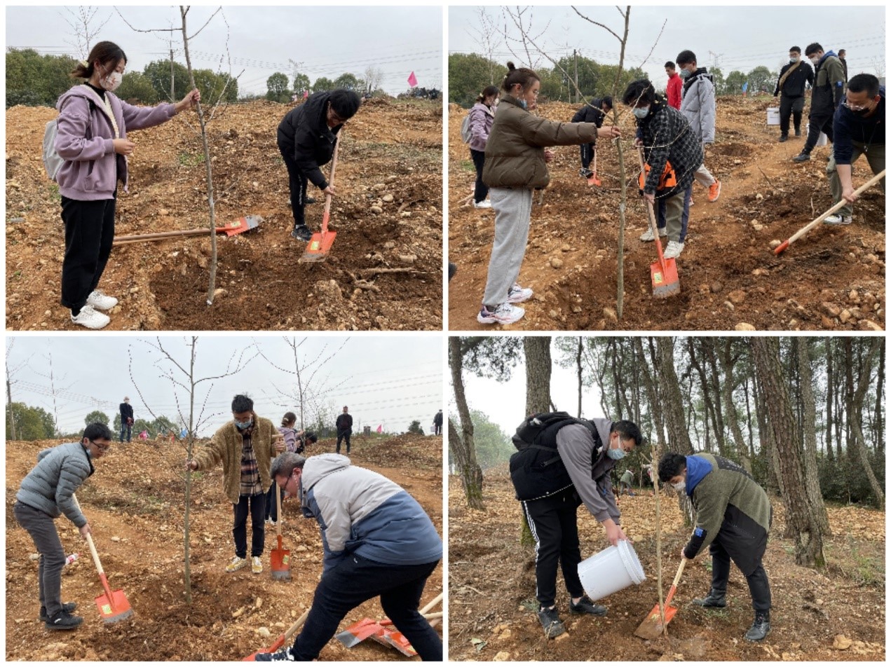 2021年3月13日,全國“兩會”剛結束,3.12植樹節的第二天,我院2個本科學生黨支部成員以實際行動學習領會兩會精神,在武漢新洲區將軍山林場開展了義務植樹活動,投身美麗中國建設。學院黨委副書記黃本金和16名學生黨員參與了義務植樹活動,在這個春天種下綠色之樹,希望之樹。