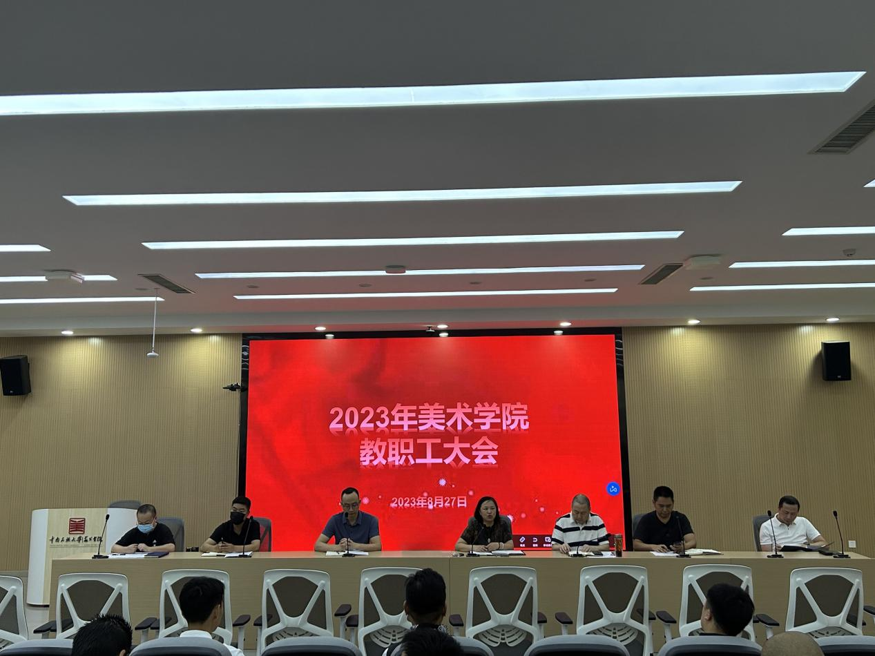 8鏈?7鏃ヤ笂鍗堬紝緹庢湳瀛﹂櫌鍦ㄧ編鏈瀛︽湳鎶ュ憡鍘呭彫寮2023騫寸瀛f柊瀛︽湡鏁欒亴宸ュぇ浼氾紝瀛﹂櫌鍏ㄤ綋鏁欒亴宸ュ弬鍔犱細璁紝浼氳鐢遍櫌闀垮惔嫻峰箍鍚屽織涓繪寔銆?br>
