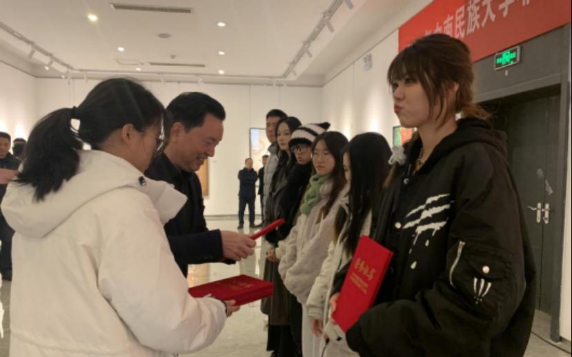鏈鍚庯紝緹庢湳瀛﹂櫌鍏氬涔﹁閭瑰弽淇甯?023騫翠腑鍗楁皯鏃忓ぇ瀛﹂潪閬楁枃鍒涘懆鏆ㄧ鍥涘眾鈥滄渶緹庡浗娼濇枃鍒涘ぇ璧涗紭縐浣滃搧灞曞紑騫曘傞瀵煎槈瀹懼拰瑙備紬浠弬瑙傝幏濂栦綔鍝侊紝鍚屽浠湪灞曞巺鍐呬氦嫻佸垱浣滃績寰椼佸垎浜幏濂栧枩鎮︺?/span>
