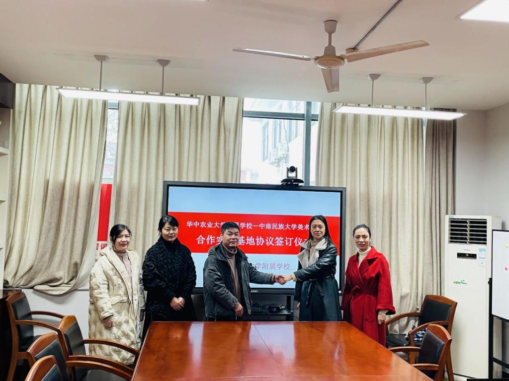 2023騫?2鏈?2鏃モ斺斿湪鏁欒偛璧勬簮鍏變韓涓庡悎浣滃叡璧㈢殑澶ц儗鏅笅錛屼腑鍗楁皯鏃忓ぇ瀛︾編鏈闄笌鍗庝腑鍐滀笟澶у闄勫睘瀛︽牎鎼烘墜寮鍚簡緹庢湳鏁欒偛瀹炰範瀹炶返鐨勬柊寰佺▼銆?2涓婂崍錛屽湪鍗庝腑鍐滀笟澶у闄勫睘瀛︽牎浼氳瀹や婦琛岀殑絳劇害浠紡涓婏紝鍙屾柟姝e紡絳劇講浜嗗疄涔犲疄璺靛熀鍦板崗璁紝涓轟腑灝忓緹庢湳鏁欒偛棰嗗煙娉ㄥ叆浜嗘柊鐨勬椿鍔涗笌鍒涢犲姏銆?/p>
