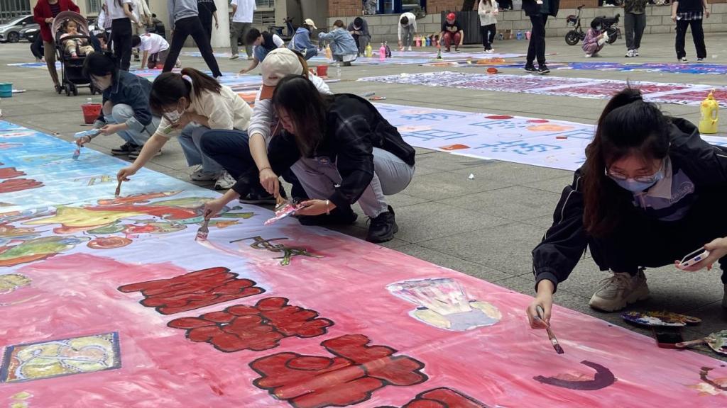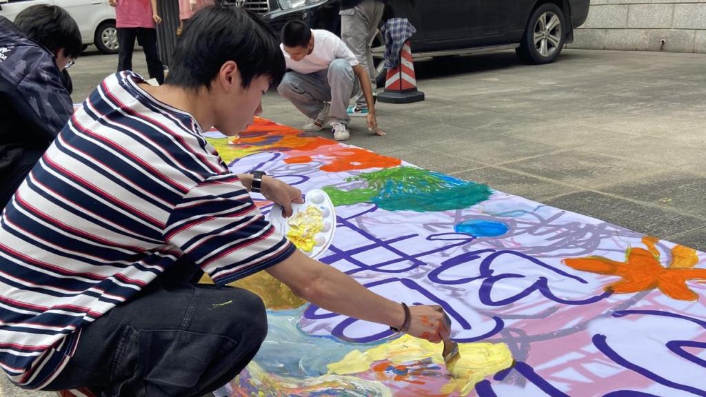5鏈?5鏃ヤ笂鍗?錛?0錛屾秱楦K璧涘湪緹庢湳瀛﹂櫌12B騫垮満涓婃寮忓紑濮嬶紝鍙備笌媧誨姩鐨勫悓瀛﹀ぇ澶氭槸2022灞婄殑姣曚笟鐢燂紝浠栦滑閫氳繃鑷緇勯槦鍜岃嚜鐢辮璁″浘妗堬紝鍒嗘垚11緇勶紝璐熻矗瀹屾垚涓寮犲法騫呭浘鐢匯?br>