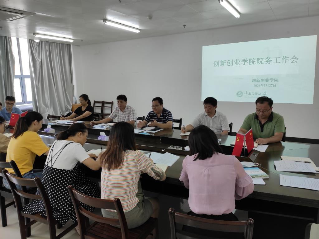 2021年9月27日下午,創(chuàng)新創(chuàng)業(yè)學(xué)院在740會(huì)議室召開(kāi)院務(wù)工作會(huì),創(chuàng)新創(chuàng)業(yè)學(xué)院領(lǐng)導(dǎo)、科室負(fù)責(zé)人及全院教職工參會(huì),會(huì)議由潘澤江院長(zhǎng)主持。