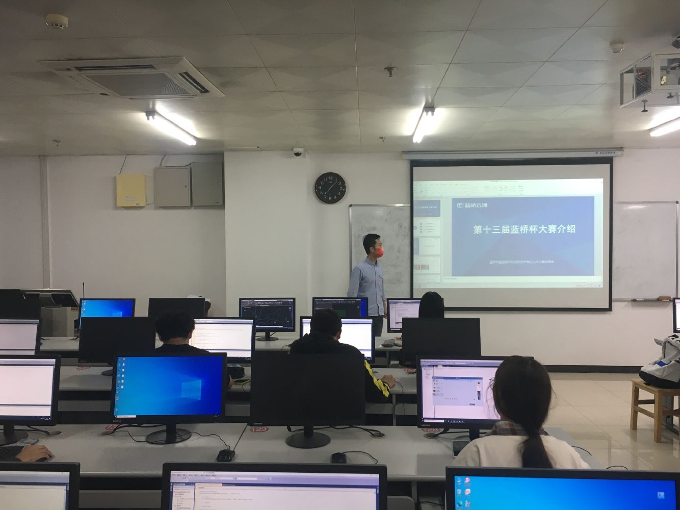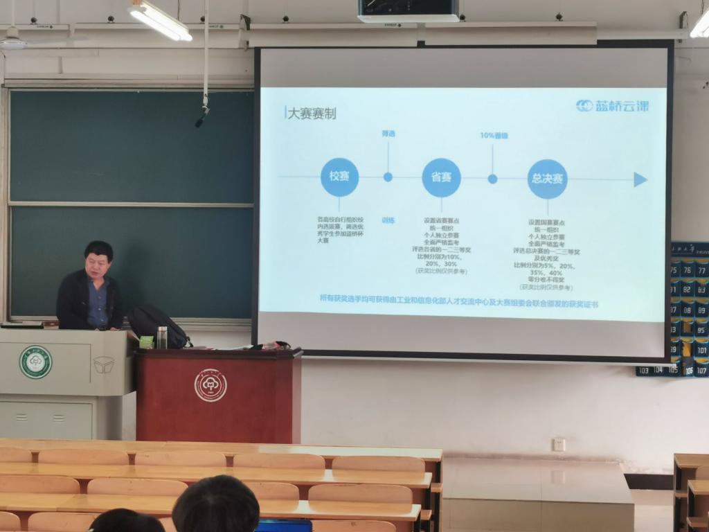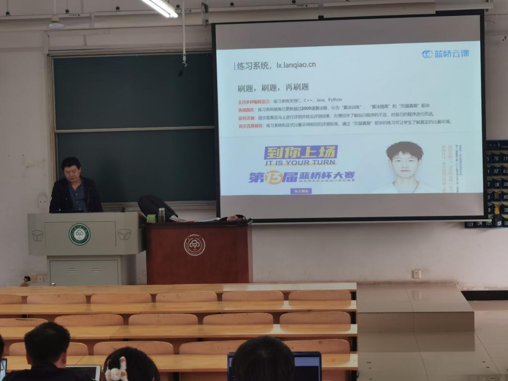 計科學(xué)院組織學(xué)生在課堂上收看藍(lán)橋杯大賽宣傳片圖一