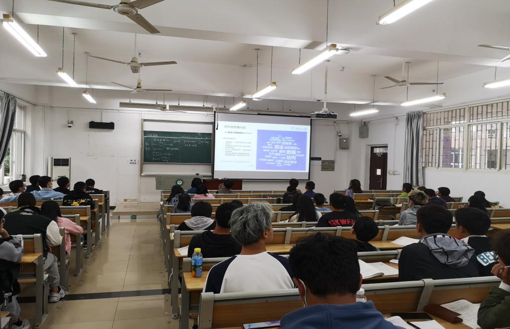 為積極響應(yīng)組委會的備賽動員月活動,學(xué)校特組織了各相關(guān)學(xué)院(如電信學(xué)院、計科學(xué)院、生醫(yī)學(xué)院等),在課堂上隨堂播放大賽組委會提供的PPT介紹、視頻介紹、宣傳海報等資料,進(jìn)行賽前動員宣講會,以便讓學(xué)生得以全方位地了解藍(lán)橋杯大賽。為了更好地幫助學(xué)生備賽,組委會還特意給參與宣講活動的學(xué)生準(zhǔn)備了一份特別的禮物,通過掃描二維碼,即可獲得包括藍(lán)橋杯歷屆真題解析在內(nèi)的藍(lán)橋云課備賽大禮包,受到學(xué)子們的熱烈歡迎。