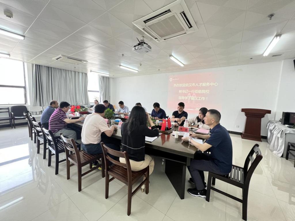 為推進才聚荊楚和學子留漢工程,4月12日上午,武漢市人才服務中心黨委書記、主任熊軍一行前來我校開展專題調研,副校長杜冬云,實驗教學與工程訓練中心、創新創業學院黨總支書記藍華榮、院長潘澤江,招生就業工作處處長舒服明等陪同考察和座談。為確保疫情防控常態化下高質量做好2022屆畢業生就業創業工作,有效緩解就業結構性矛盾,雙方就學子留漢工程政策有效落地、啟航計劃、馬蘭花計劃、政校企就創業協同機制創新等,進行了深入交流研討。