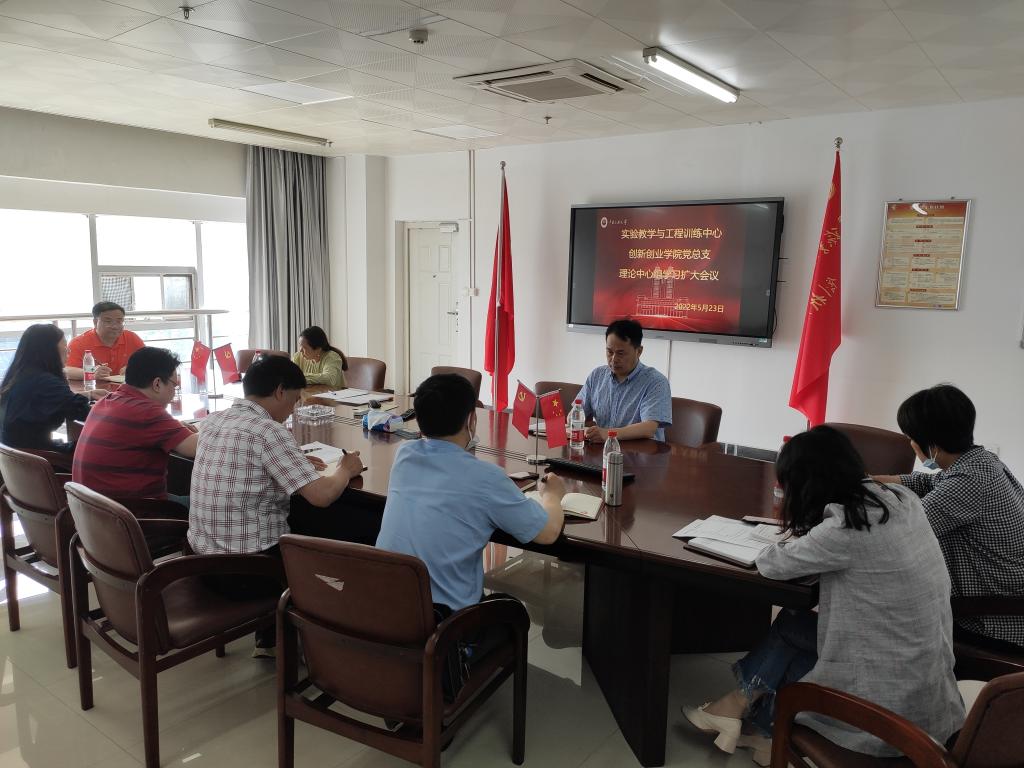 2022年5月23日,實(shí)驗(yàn)教學(xué)與工程訓(xùn)練中心、創(chuàng)新創(chuàng)業(yè)學(xué)院黨總支理論學(xué)習(xí)中心組召開第三次擴(kuò)大學(xué)習(xí)會,中心、學(xué)院領(lǐng)導(dǎo)班子成員、黨支部書記、黨員科室負(fù)責(zé)人等參加,學(xué)習(xí)會由黨總支書記藍(lán)華榮同志主持。