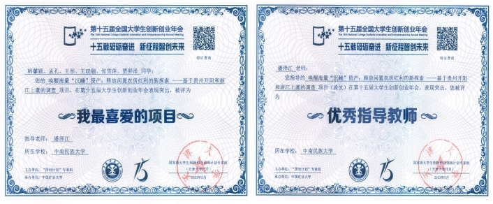 一直以來,我校高度重視創新創業教育工作,注重大學生創新創業訓練計劃項目管理。第十五屆、第十六屆國創年會我校均有3項入圍,入圍數量和獲獎數量均位列湖北省前列、全國民族類院校第一位,其中《喚醒海量“沉睡”資產:釋放閑置農房紅利的新探索》獲“我最喜愛的項目”獎(全國共20項),潘澤江教授在第十五屆年會上喜獲“優秀指導教師”獎。近兩屆“國創年會”中取得的優異成績,充分體現了我校雙創教育的良好育人成效。未來,學校將進一步加強大學生創新創業訓練計劃項目過程管理,鼓勵更多師生參與項目,為學生創造更好的創新創業平臺,培養更多、更優秀的高水平創新創業人才,賦能畢業生更加充分更高質量就業創業。