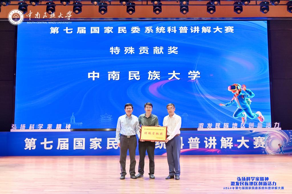 圖為民委領導為中南民族大學頒發特殊貢獻獎(中南民族大學供圖)