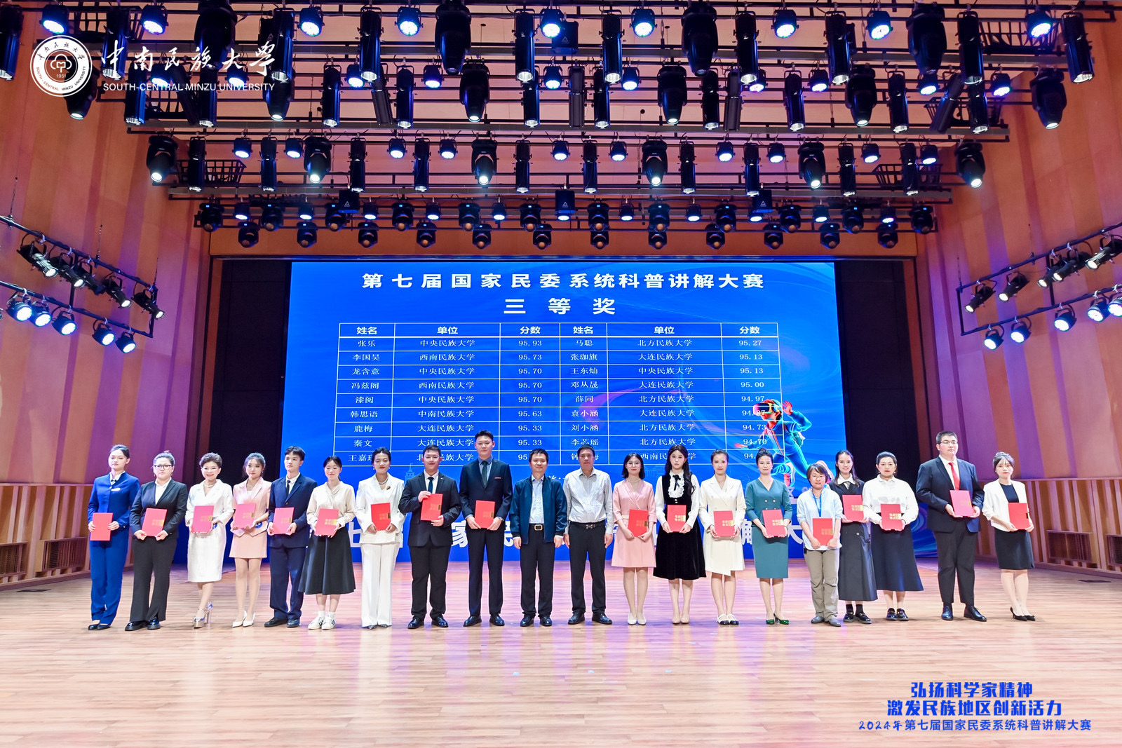圖為獲得三等獎的選手與頒獎嘉賓合影(中南民族大學供圖)