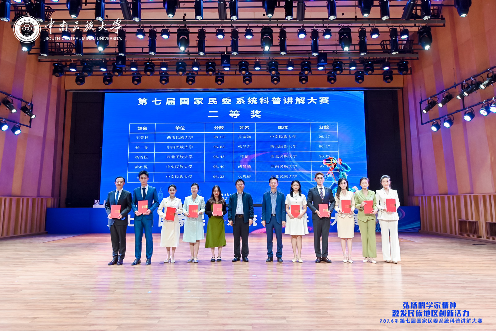 圖為獲得二等獎的選手與頒獎嘉賓合影(中南民族大學供圖)