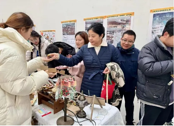 創意集市項目展現的文創產品琳瑯滿目,有樣式精美的剪紙作品,有別具一格的書法繪畫,還有小巧精致的飾品等等,攤位吸引了眾多師生及附近居民前來參觀、選購、體驗。