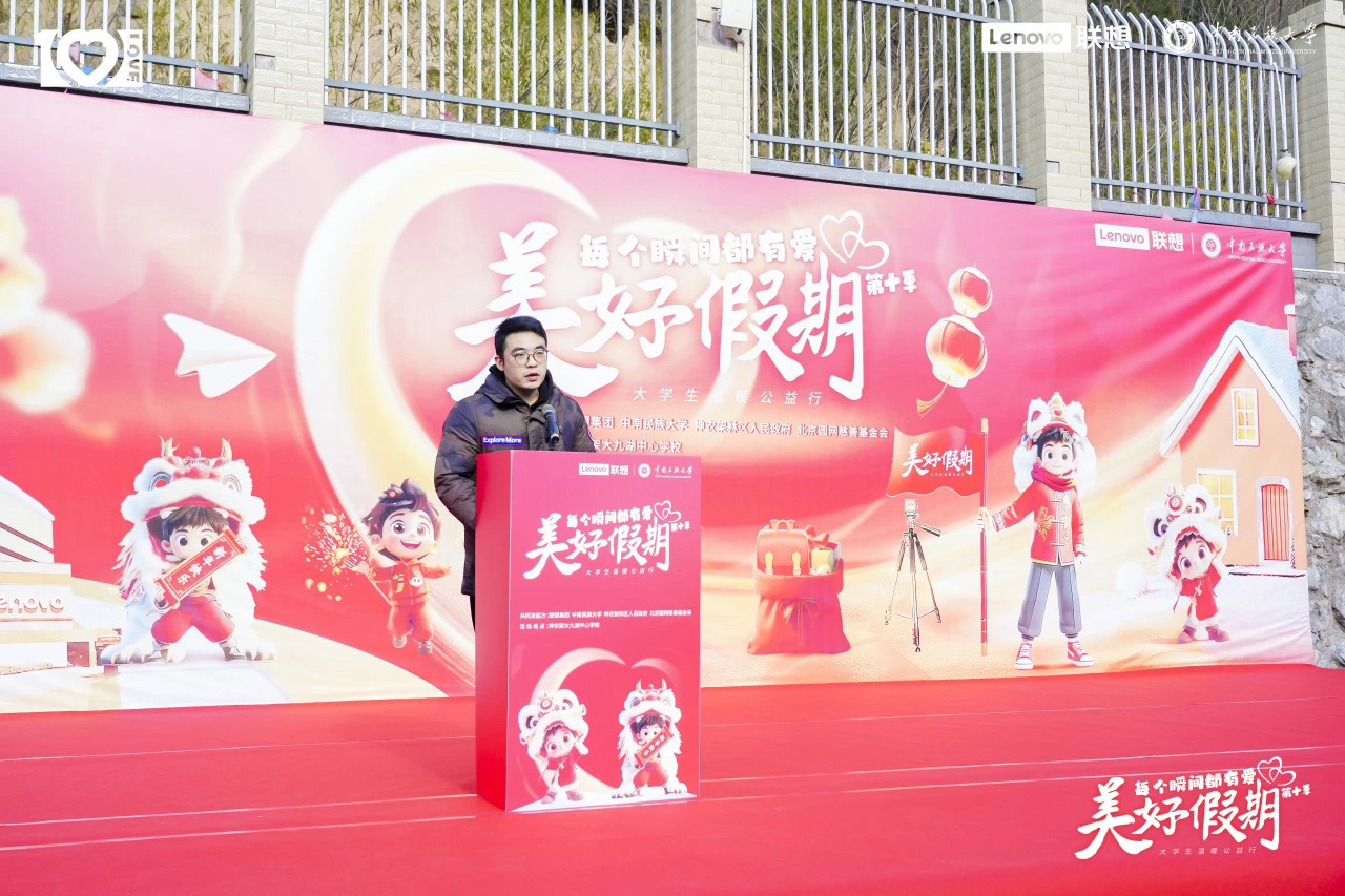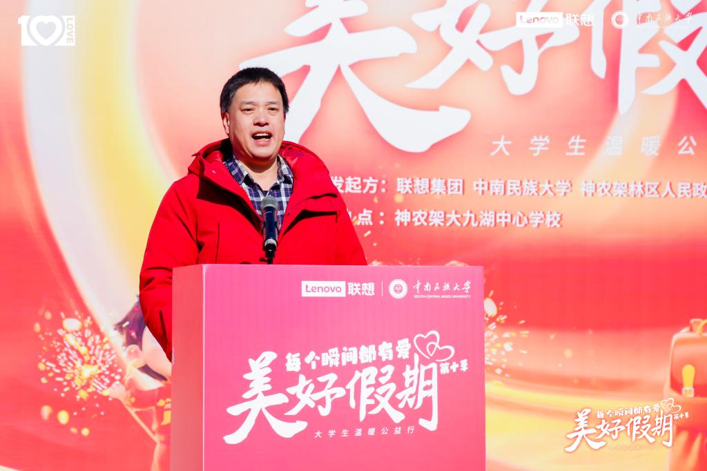 我校實驗教學與工程訓練中心主任、創新創業學院院長、國家級創新創業教育實踐基地主任-潘澤江發表講話,中南民族大學一直致力于科普公益活動和民族公益活動,與聯想集團共同開展的“美好假期”活動,為鄉村兒童帶來了實實在在的幫助。潘院長表示,希望借助學校的教育資源和聯想的企業優勢,為留守兒童提供學習和成長的機會,培養他們的綜合素質。同時,也期望讓更多的大學生志愿者得到鍛煉,增強社會責任感,傳承和弘揚奉獻精神。