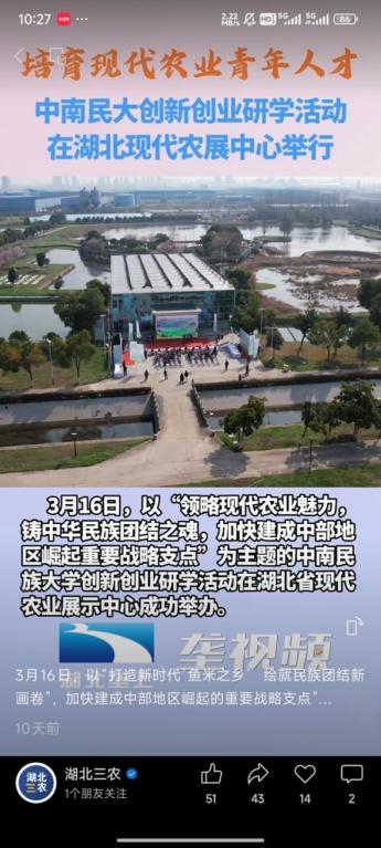 湖北三農視頻號:培育現代農業青年人才——中南民大創新創業研學活動在湖北現代農展中心舉行