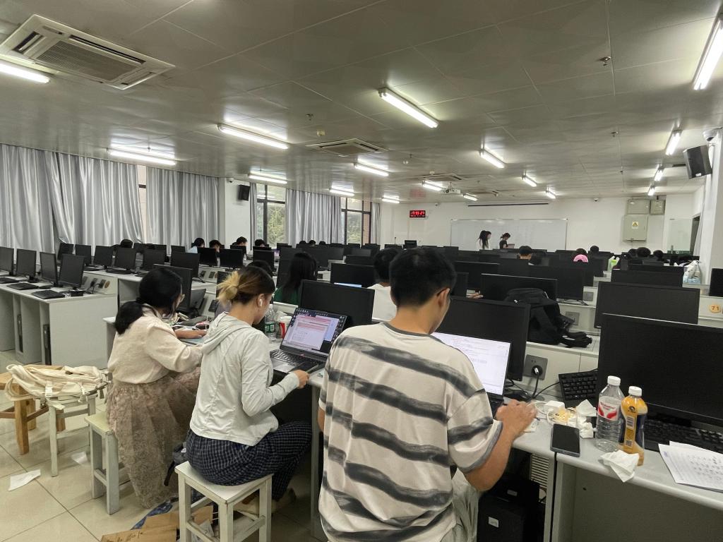 我校參賽師生合影 為保障此次競(jìng)賽有序開展,賽前各相關(guān)部門提前謀劃、協(xié)同發(fā)力,做足了準(zhǔn)備工作。創(chuàng)新創(chuàng)業(yè)學(xué)院、數(shù)學(xué)與統(tǒng)計(jì)學(xué)學(xué)院緊密合作,精心組織了數(shù)學(xué)建模暑期培訓(xùn)班,通過系統(tǒng)的課程講解、案例分析和實(shí)戰(zhàn)演練,為參賽學(xué)子夯實(shí)理論基礎(chǔ)、提升建模技能,全力培育競(jìng)賽后備力量;本科生院實(shí)驗(yàn)教學(xué)與工程訓(xùn)練中心則充分發(fā)揮資源優(yōu)勢(shì),為競(jìng)賽提供了設(shè)施完善、環(huán)境優(yōu)良的專屬考場(chǎng),并配備專業(yè)的軟件技術(shù)和網(wǎng)絡(luò)支持,確保競(jìng)賽期間設(shè)備穩(wěn)定、操作順暢。 8月底,在前期培訓(xùn)基礎(chǔ)上,數(shù)模教練組秉持公平、公正、公開的原則,綜合考量學(xué)員課后練習(xí)的完成質(zhì)量、解題思路的創(chuàng)新性以及考勤的規(guī)整性,從300余名參加培訓(xùn)的數(shù)學(xué)建模愛好者中,嚴(yán)格遴選出47支優(yōu)秀團(tuán)隊(duì)代表學(xué)校參賽。每一支隊(duì)伍都承載著學(xué)校的期望,代表著民大學(xué)子在數(shù)學(xué)建模領(lǐng)域的扎實(shí)功底。 本屆數(shù)模競(jìng)賽于9月4日18:00正式啟動(dòng),141名參賽選手迅速進(jìn)入狀態(tài),在16號(hào)教學(xué)樓2樓2區(qū)的考場(chǎng)內(nèi)開啟了為期 3天4夜的緊張賽程。期間,選手們圍繞競(jìng)賽題目,分工協(xié)作、密切配合,時(shí)而專注分析問題、構(gòu)建數(shù)學(xué)模型,時(shí)而敲擊鍵盤、運(yùn)用計(jì)算機(jī)技術(shù)進(jìn)行數(shù)據(jù)處理與求解,在高強(qiáng)度的比拼中展現(xiàn)出扎實(shí)的專業(yè)素養(yǎng)和頑強(qiáng)的拼搏精神。