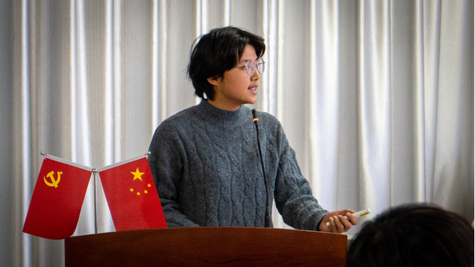 公司運營仿真與模擬實戰俱樂部 會長 蘭章銘同學發言,創服活動管理辦公室供圖