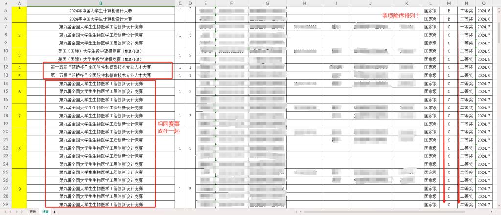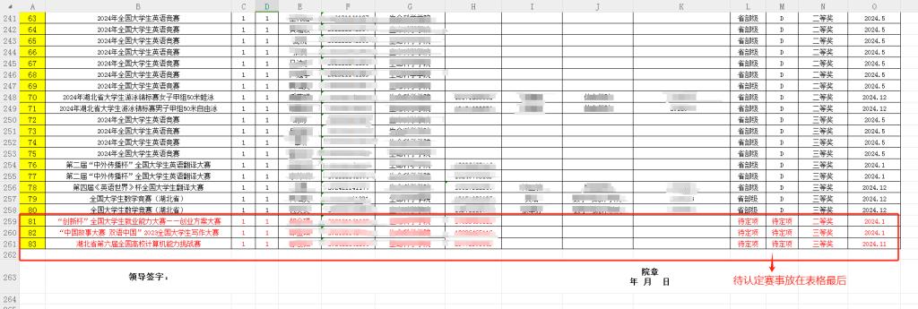 附件1:相同賽事匯總在一起,并按照獲獎(jiǎng)等級(jí)降序的方式進(jìn)行排列,待認(rèn)定賽事放在表格最后。