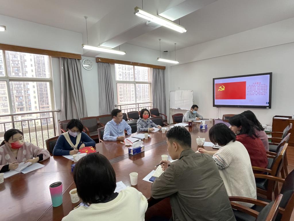 主題黨日活動(dòng)上,全體黨員通過(guò)網(wǎng)上轉(zhuǎn)賬方式現(xiàn)場(chǎng)交納黨費(fèi)并重溫入黨誓詞、誦讀黨章。柯尊韜書記向黨支部10月份過(guò)政治生日的黨員魯睿老師贈(zèng)送了政治生日賀卡,送出希望寄語(yǔ)。魯睿老師對(duì)照黨章要求談感受、找差距、定措施,表示要更加努力工作,發(fā)揮黨員的先鋒模范作用。隨后,柯尊韜書記圍繞辦公室干部和輔導(dǎo)員隊(duì)伍建設(shè)的主題為行政黨支部全體成員講黨課。