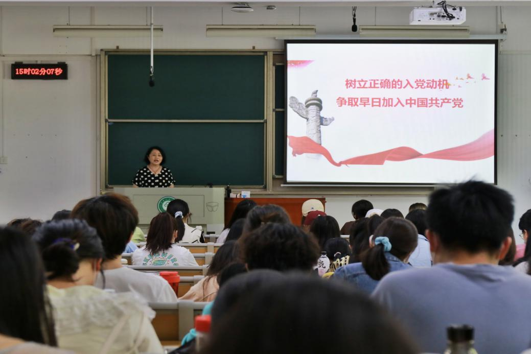 經濟學院正處級專職組織員吳嬰擔任培訓班第三講主講。她以《樹立正確的入黨動機 爭取早日加入中國共產黨》為題,詳細介紹了發展黨員的六步流程及申請的條件要求,著重強調發展黨員工作要堅持落實“三個堅持”,做到一個禁止、一個反對的指導原則,始終把政治標準放在首位。她要求同學們要從樹立正確入黨動機的原因、要求和方式中不斷修正自己,積極向黨組織匯報自己的思想與工作,經受住黨組織的長期考驗,堅持自我批評、自我教育、自我提升,積極爭取,全面提升自身素質,不斷向黨組織緊緊靠攏。