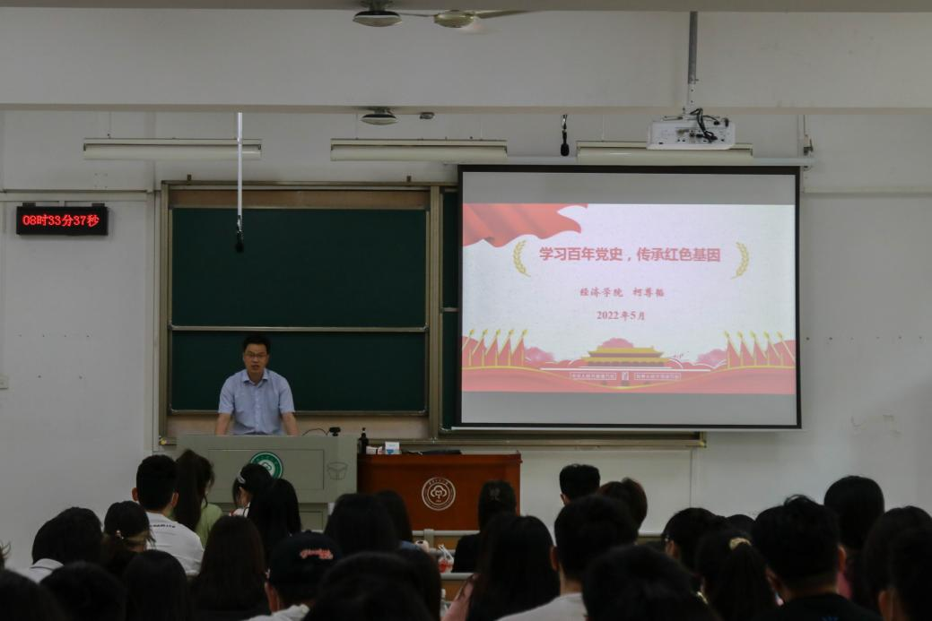 經濟學院黨委書記柯尊韜以《學習百年黨史,傳承紅色基因》為題,為同學們開展培訓班第一講。他從百年黨史由哪些重要歷史時期組成,不同時期發生了哪些重大歷史事件;為什么要總結黨的百年奮斗重大成就和歷史經驗;中國共產黨百年奮斗的歷史意義是什么;青年大學生應該怎樣弘揚偉大建黨精神、怎樣傳承紅色基因四個方面,通過重大事件、重大會議、重要人物向同學們解讀了中國共產黨百年奮斗歷程、偉大建黨精神和寶貴歷史經驗,希望青年大學生進一步感悟馬克思主義強大思想偉力、進一步把握歷史發展規律和大勢、進一步深化對黨的性質宗旨的認識、進一步發揚艱苦奮斗的革命精神,努力讓自己成長為堪當民族復興重任的時代新人。