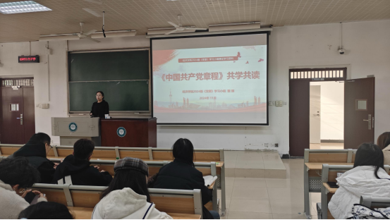 郭修齊介紹了《經(jīng)濟(jì)學(xué)院2024級黨章學(xué)習(xí)小組工作方案》。她以《<中國共產(chǎn)黨章程>共學(xué)共讀》為題,向大家介紹了《黨章》的地位和作用、黨的二十大對《黨章》的修改以及認(rèn)真學(xué)習(xí)和嚴(yán)格執(zhí)行《黨章》的意義,強(qiáng)調(diào)學(xué)習(xí)《黨章》是加強(qiáng)黨的建設(shè)的一項基礎(chǔ)性經(jīng)常性工作,是志向加入中國共產(chǎn)黨的青年大學(xué)生的應(yīng)盡義務(wù)和莊嚴(yán)責(zé)任。