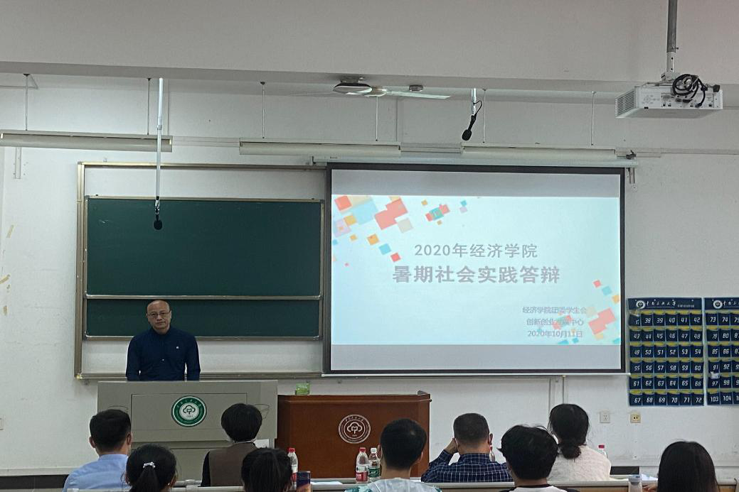 本站訊(記者:黃軒軒)為引領(lǐng)各年級學(xué)生深入學(xué)習(xí)習(xí)近平新時(shí)代中國特色社會主義思想,扎根中國大地了解國情民情,提高社會實(shí)踐能力,經(jīng)濟(jì)學(xué)院組織開展了2020暑期“三下鄉(xiāng)”社會實(shí)踐活動。10月11日上午,經(jīng)濟(jì)學(xué)院于15號教學(xué)樓319教室舉行“三下鄉(xiāng)”暑期社會實(shí)踐答辯會,檢驗(yàn)學(xué)生實(shí)踐活動成果。經(jīng)濟(jì)學(xué)院團(tuán)委書記高無盡,教師胡凱、高華云、劉家悅、李永芳擔(dān)任評委。會議由創(chuàng)新創(chuàng)業(yè)發(fā)展中心部長王皖儷主持。