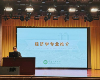 經濟學教研室胡衛東老師,以“人生中什么最重要”開場,與同學們展開互動。并詳細介紹了經濟學專業“本科生雙導師制”和“六個一”工程的本科人才培養創新模式,以及開展的專業知識讀書分享、暑期調研、經濟知識競賽、運動、科研等多項品牌活動。