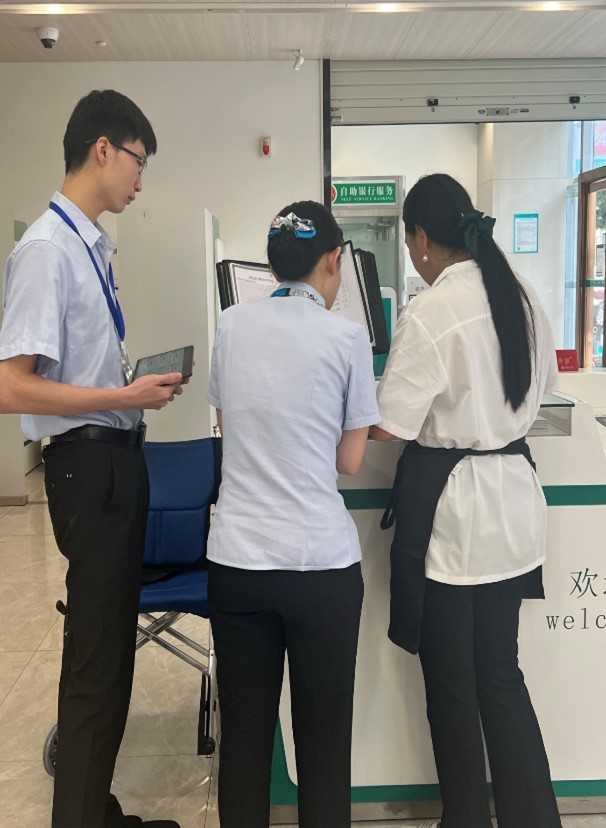 實習(xí)期間,同學(xué)們活躍于銀行各個崗位。在客戶經(jīng)理崗位,同學(xué)們積極協(xié)助客戶經(jīng)理開展工作,熱情地與客戶溝通交流,仔細(xì)了解客戶的金融需求,憑借扎實的專業(yè)知識為客戶提供個性化的金融解決方案。無論是資產(chǎn)配置建議還是貸款業(yè)務(wù)咨詢,他們都能以專業(yè)的素養(yǎng)和耐心的態(tài)度為客戶答疑解惑,展現(xiàn)出良好的服務(wù)意識和敬業(yè)精神。在客服經(jīng)理崗位,同學(xué)們嚴(yán)謹(jǐn)細(xì)致地為客戶服務(wù),協(xié)助客戶辦理從開戶到轉(zhuǎn)賬,從理財咨詢到業(yè)務(wù)查詢等各種業(yè)務(wù)。同學(xué)們深刻體會到金融工作的嚴(yán)謹(jǐn)性,嚴(yán)格按照流程操作,每一個環(huán)節(jié)都認(rèn)真對待,確??蛻粜畔⒌陌踩院蜆I(yè)務(wù)辦理的準(zhǔn)確性。在大堂經(jīng)理崗位,同學(xué)們充分發(fā)揮協(xié)調(diào)和引導(dǎo)作用,熱情地迎接每一位客戶,主動詢問客戶需求,引導(dǎo)客戶到相應(yīng)的業(yè)務(wù)區(qū)域辦理業(yè)務(wù)。通過深入學(xué)習(xí)后,同學(xué)們逐漸熟悉銀行的各類業(yè)務(wù)及產(chǎn)品服務(wù),在為客戶提供精準(zhǔn)專業(yè)的信息同時,努力以良好的溝通技巧和服務(wù)態(tài)度,為客戶提供舒適、便捷的金融服務(wù)。