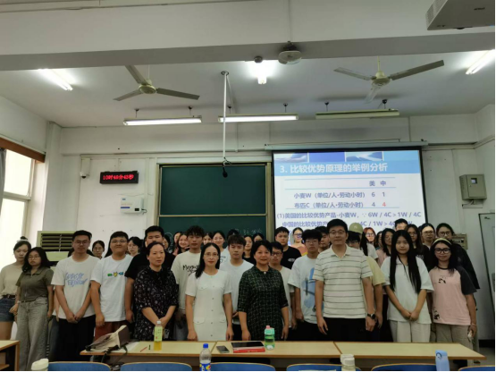 高等學(xué)校人才培養(yǎng)是育人和育才相統(tǒng)一的過程,建設(shè)高水平人才培養(yǎng)體系,必須將思想政治工作體系貫通其中,必須抓好課程思政建設(shè)。2024年9月13日上午,經(jīng)濟(jì)學(xué)院揭子平老師在15號教學(xué)樓417教室講授了一堂生動(dòng)的《國際經(jīng)濟(jì)學(xué)》課程思政公開課。經(jīng)濟(jì)學(xué)院教學(xué)副院長馬楠、國際經(jīng)濟(jì)與貿(mào)易教研室余利紅和曹考老師到場觀摩交流。