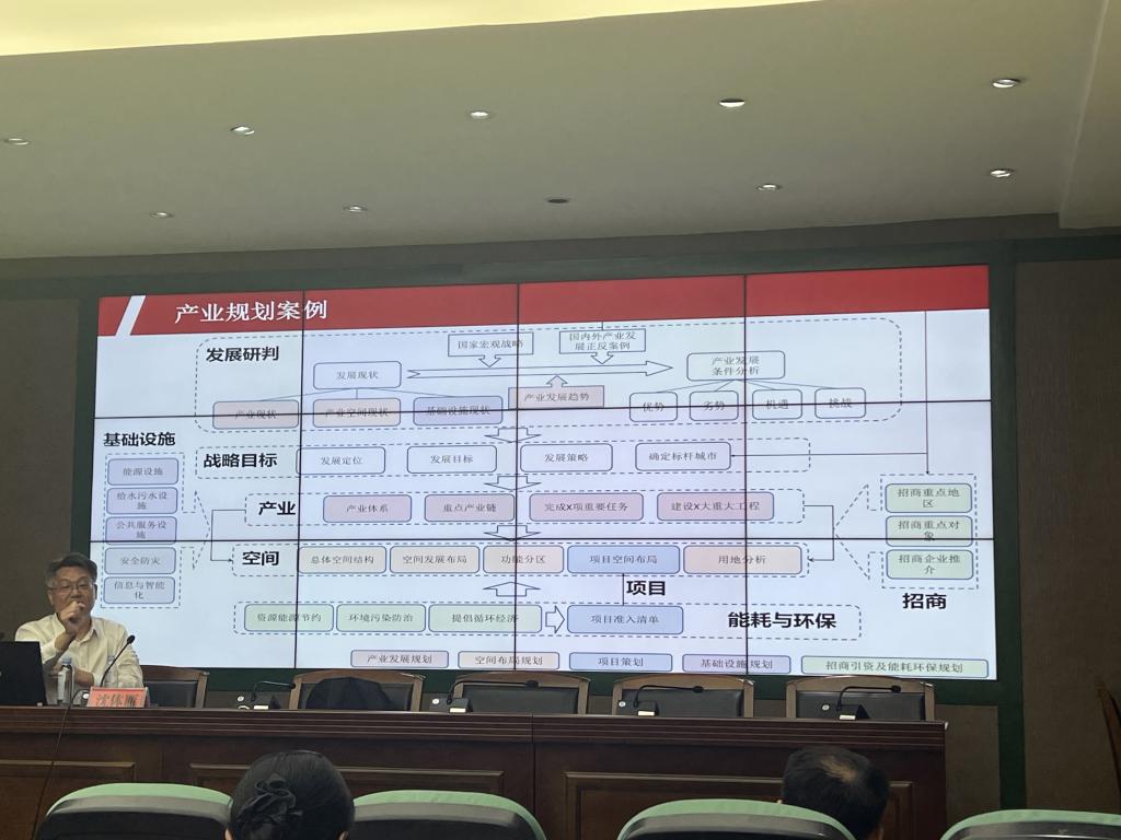在講座中,沈體雁教授首先回顧了中國城市治理創(chuàng)新的經(jīng)驗(yàn),指出國家規(guī)劃是中國式現(xiàn)代化的重要特征和核心機(jī)制。他通過“條”“地”“塊”三個(gè)維度,詳述了國家規(guī)劃體系的構(gòu)成,并提議利用大數(shù)據(jù)和人工智能等技術(shù)完善規(guī)劃體系,推動(dòng)其科學(xué)化、民主化、智能化和法制化。隨后,沈體雁教授聚焦產(chǎn)業(yè)規(guī)劃,詳細(xì)介紹了產(chǎn)業(yè)規(guī)劃的概念、流程、要素以及從業(yè)者所需具備的能力,深入剖析了基于“五劃同規(guī)”的紡織服裝產(chǎn)業(yè)集群規(guī)劃案例。他提出新質(zhì)生產(chǎn)力是推動(dòng)中國式現(xiàn)代化的關(guān)鍵力量,并結(jié)合政策解讀了人工智能產(chǎn)業(yè)規(guī)劃,以北京、上海、廣東等地的產(chǎn)業(yè)戰(zhàn)略為例,探討了未來產(chǎn)業(yè)發(fā)展的方向。最后,沈體雁教授以北京經(jīng)開區(qū)精準(zhǔn)招商、營口產(chǎn)業(yè)創(chuàng)新平臺(tái)等案例,展示了智能規(guī)劃在產(chǎn)業(yè)招商、區(qū)域產(chǎn)業(yè)洞察等方面的應(yīng)用價(jià)值。