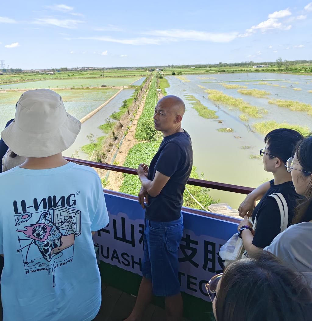 午后,師生來到潛江市熊口鎮趙腦村蝦稻共作基地。潛江市農業技術推廣中心主任楊小紅,作為當地小龍蝦產業發展核心人物,詳細講解“蝦稻共作”模式下,金融與數字科技如何助力產業標準化、規?;墶;剡\用物聯網傳感器,實時采集水質、蝦稻生長數據,這些數據同步傳輸至金融機構風控系統。從蝦農貸支持苗種采購、設施升級,金融機構依據數字平臺反饋的基地生產數據,實現貸款審批秒級響應、靈活續貸;到保險產品借助衛星遙感、無人機巡檢,精準識別養殖風險,快速理賠。金融“活水”借助數字科技精準滴灌產業鏈各環節。同學們深入田間,觀察蝦稻共生場景,結合金融知識,探討如何進一步優化金融產品設計,利用數字科技拓寬支農服務覆蓋面,讓金融更好扎根鄉村產業。