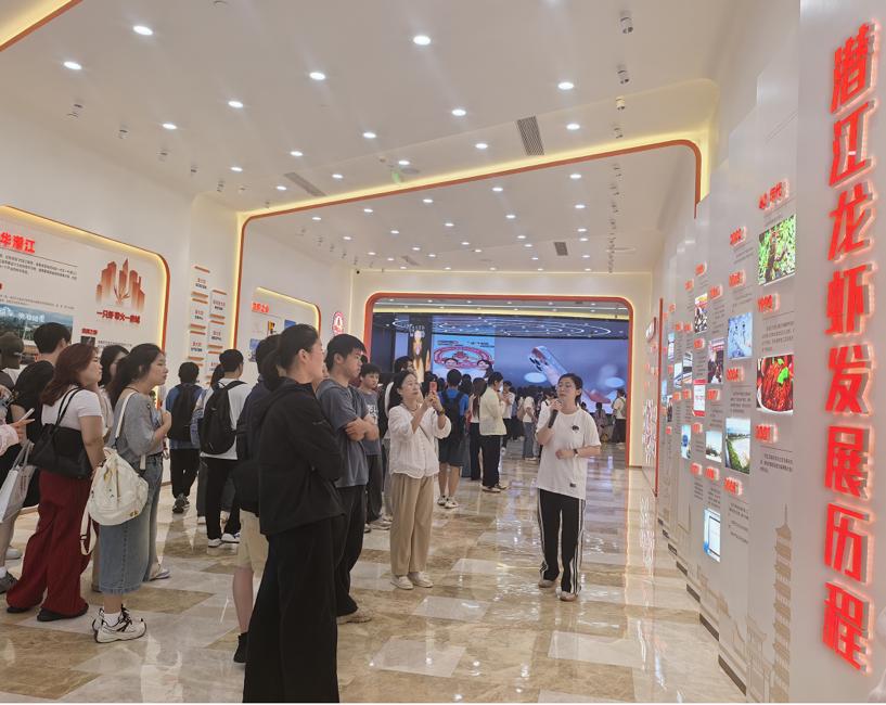 在負責人的講解下,同學們對潛江蝦稻總體概況、蝦稻實施監(jiān)督和外場感知設(shè)備、應(yīng)急預(yù)案、全產(chǎn)業(yè)鏈管理、質(zhì)量安全監(jiān)測、國內(nèi)供銷及市場分析、產(chǎn)業(yè)支撐服務(wù)體系等內(nèi)容進行了全面的了解學習。潛江市以蝦稻養(yǎng)殖作為核心業(yè)務(wù),“蝦稻共作”模式為我國農(nóng)業(yè)提質(zhì)增效、綠色安全、農(nóng)民增收創(chuàng)造了一個全新的模式,推動了鄉(xiāng)村振興戰(zhàn)略的有效實施。