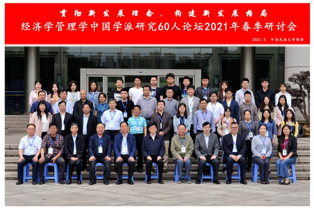 本站訊(記者:周贊)5月16日,以“貫徹新發展理念,構建新發展格局”為主題的“經濟學管理學中國學派研究60人論壇” 2021年春季研討會在中南民族大學學術交流中心順利召開。此次研討會由“經濟學管理學中國學派研究60人論壇”主辦,中南民族大學經濟學院與湖北全面小康建設研究院承辦。來自中國社科院、中央民族大學、西安交通大學、鄭州大學、華中科技大學、華中農業大學、中南民族大學、北京印刷學院、北部灣大學、湖北師范大學和《中國社會科學》《中國工業經濟》《中南民族大學學報》《區域經濟評論》以及《經濟管理》出版社的專家、學者出席研討會。會議開幕式由中南民族大學經濟學院院長李波主持。