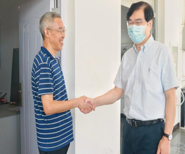 會前,李校長到辦公室走訪看望了經濟學院二級教授李忠斌、2021年度從教執教滿30年教職工沈道權教授,感謝他們為學校發展做出的貢獻,并為他們頒發紀念品。