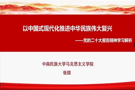 為深入學習貫徹黨的二十大精神,深刻領悟二十大報告確定的重要思想、重要觀點、重大戰(zhàn)略、重大舉措,以更加扎實的工作作風和飽滿的精神狀態(tài)推進學院各項工作不斷邁上新臺階,11月23日晚,經濟學院線上組織開展了黨的二十大精神宣講活動。中南民族大學學習貫徹黨的二十大精神宣講團成員、馬克思主義學院張燚教授應邀作專題輔導報告,經濟學院全體教職工、本科生和研究生黨員參會學習。活動由經濟學院黨委書記柯尊韜主持。