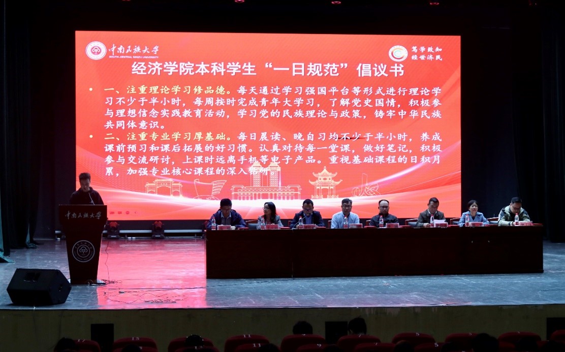 為深入開展鑄牢中華民族共同體實踐教育,持續營造并鞏固互助共學的良好學風院風,2023年11月6日晚上,經濟學院在大禮堂召開2022-2023學年“同學共進”計劃表彰大會暨2021級考研數學基礎班開班儀式,全體院領導、教研室主任、輔導員、班導師代表、受表彰學生代表、2021級參加考研數學基礎班的學生、2023級全體學生參加了開班式,武漢高頓考研學校校長樊子洋等人應邀出席表彰大會,會議由經濟學院黨委副書記劉君強主持。