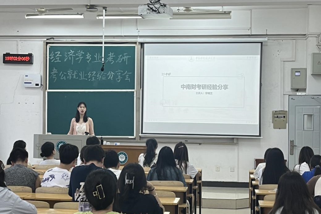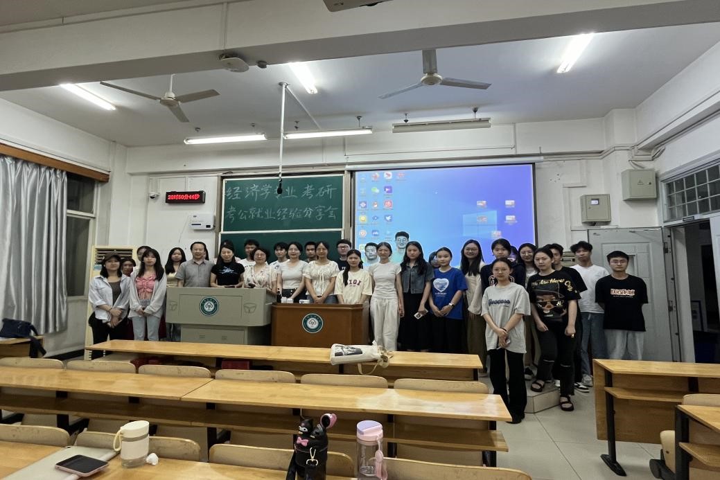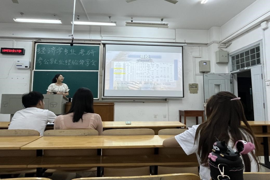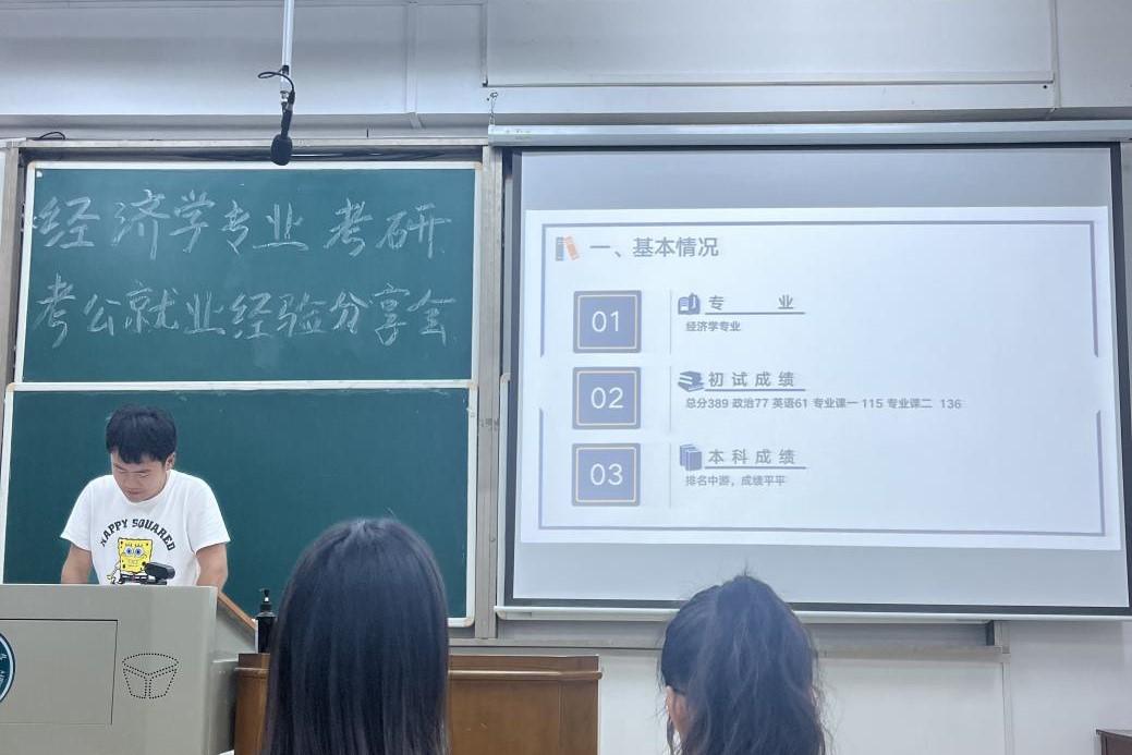 為幫助同學(xué)們了解考研、考公和求職的相關(guān)信息及備考技巧,解決同學(xué)們在未來職業(yè)規(guī)劃和學(xué)業(yè)發(fā)展方面的困惑,5月23日晚,經(jīng)濟(jì)學(xué)教研室邀請曾曦芝、陳小莉、龔穎琳、馬志威和楊欣雨五位優(yōu)秀畢業(yè)生為經(jīng)濟(jì)學(xué)專業(yè)2021級同學(xué)進(jìn)行考研、考公、求職經(jīng)驗(yàn)分享。經(jīng)濟(jì)學(xué)教研室主任馬宏、副主任閔銳和胡衛(wèi)東三位老師參加分享會。