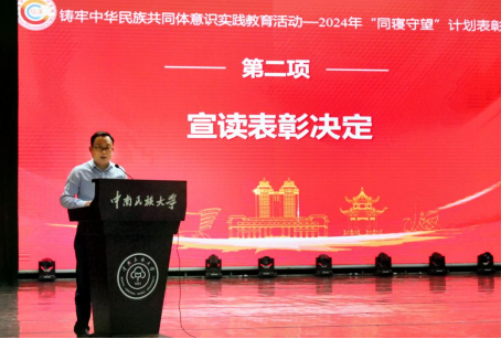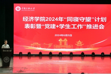 為深入開展鑄牢中華民族共同體意識實踐教育,充分發揮寢室育人功能,進一步加強黨建引領,統籌推進學生教育管理服務,6月5日下午,經濟學院于大禮堂舉辦2024年“同寢守望”計劃表彰暨“黨建+學生工作”推進會。經濟學院黨委書記戴迎峰、黨委副書記劉君強、正處級專職組織員黃仕清、副院長馬楠、各年級輔導員、受表彰寢室、2023級全體學生及2022級學生骨干參加本次活動。本次會議由2023級輔導員華文健主持。