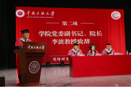 畢業典禮和學位授予儀式在莊嚴的國歌聲中拉開帷幕。經濟學院黨委副書記、院長李波教授在致辭中對2024屆畢業生致以熱烈祝賀,向支持學院工作的學生家長致以崇高的敬意和誠摯的問候,在學院建院40周年之際,他結合“篤學致知,經世濟民”的院訓和精神內核,提出在讀萬卷書中涵養腹有詩書氣自華的人文底蘊、在行萬里路中樹立先天下之憂而憂的價值導向、在閱萬般事中深化世事洞明皆學問的處世之道三點建議。他鼓勵畢業生們肩負起新時代的重任,以鑄牢中華民族共同體意識為主線,以青春之名,赴時代之約,與祖國同行,為人民奉獻,讓青春在奔赴祖國大好河山、以中國式現代化推動中華民族偉大復興的征程中綻放絢麗之花。