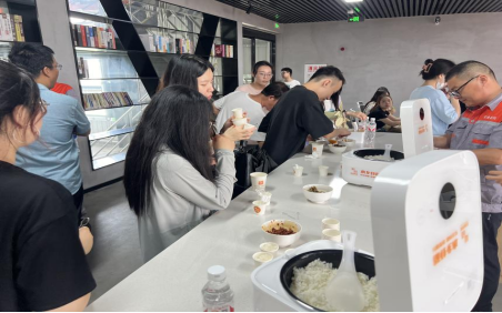“這些大米都是通過‘蝦稻共作’模式生產出來的,不僅香味獨特、顆粒飽滿、口感松軟,還深受廣大消費者們的喜愛,現已成為潛江的優勢熱銷產品?!本藿鹈讟I生產部部長向師生介紹“蝦稻共作”模式下產出的大米,邀請師生品嘗出自于生產線上的熱騰騰的米飯。