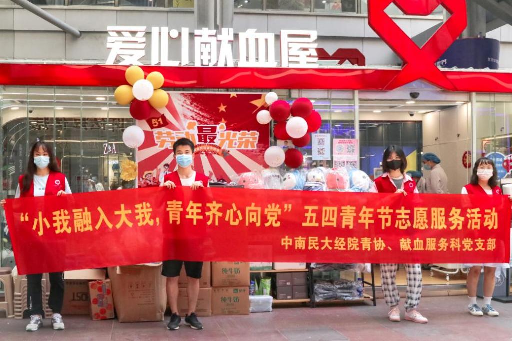 本站訊(記者:唐慧揚 王娟)為發揚團員青年熱愛祖國、奉獻人民的向上精神,發揮青年志愿者友愛互助、和諧進步的積極作用,5月1日至5日,經濟學院團委學生會志工部、經濟學院青年志愿者協會白翼護夢組、中南民族大學石榴籽志愿服務隊聯合武漢血液中心光谷世界城獻血屋開展了“小我融入大我、青年齊心向黨”五四主題團日活動。