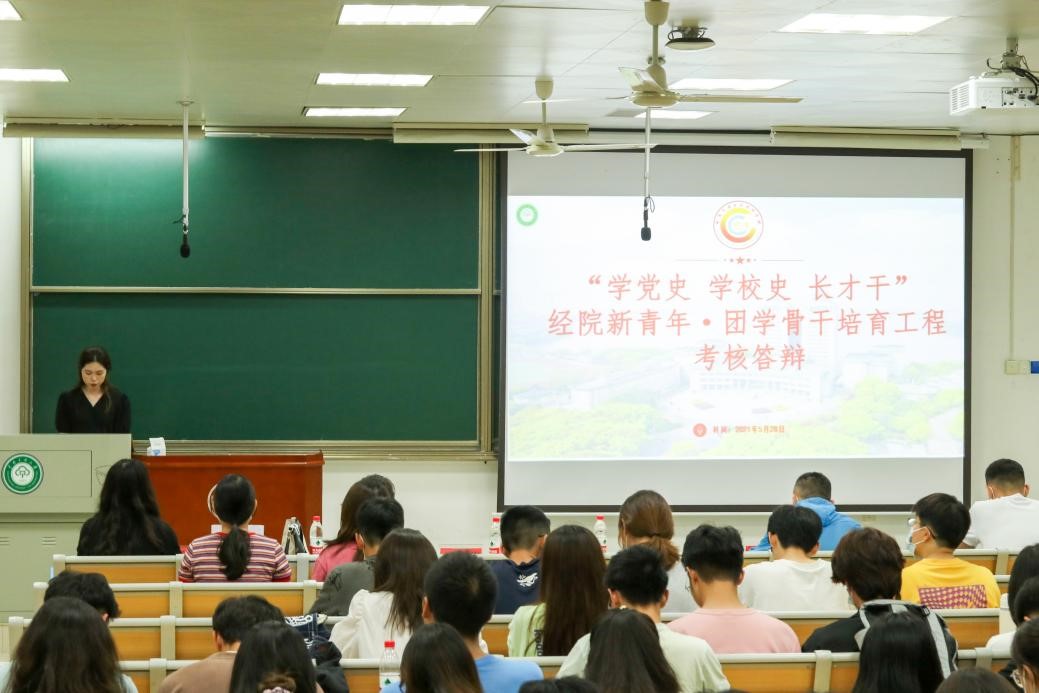 本站訊(記者:王娜)為檢驗前期學習成果,總結工作經驗,5月28日晚,經濟學院于15號教學樓205教室舉行了“學黨史 學校史 長才干”經院新青年·團學骨干培育工程結業答辯。經濟學院黨委副書記劉君強、2019級輔導員熊岳煒、高無盡、2020級輔導員徐瑩、阿禾朱力·黑沙擔任答辯會評委,培育工程全體學員參加答辯。答辯會由傅妤婧主持。